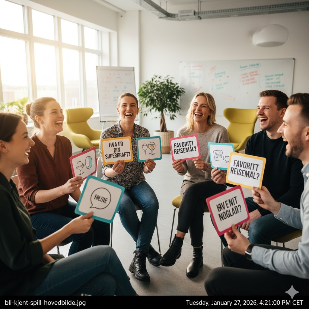 Fremtidens bli kjent spill handler om personalisering og teknologi. Vi ser nå inntoget av AI-styrte isbrytere som foreslår spørsmål basert på deltakernes LinkedIn-profiler eller felles interesser (med samtykke). VR-baserte teambuilding-øvelser lar kolleger fra hele verden møtes i en virtuell jungel for å løse oppgaver. Samtidig ser vi en motreaksjon der «analog nærhet» blir sett på som en luksusvare. Enkle kortspill og brettspill som fremmer ansikt-til-ansikt samtale vil derfor fortsette å være ryggraden i sosiale sammenkomster, nettopp fordi de gir oss den ekte menneskelige kontakten vi ofte savner i en digital hverdag.